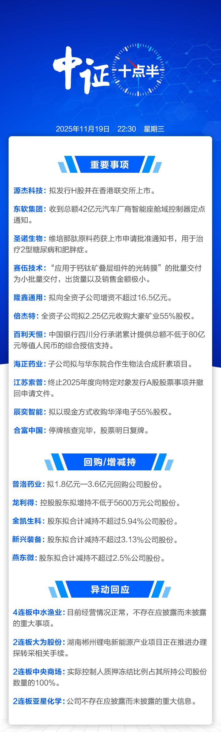 【中证十点半】源杰科技拟赴港上市;东软集团获42亿元大单;合富中国明日复牌