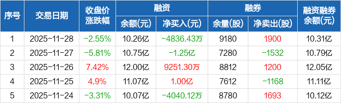 源杰科技:融资净偿还4836.43万元,融资余额10.26亿元(11-28)