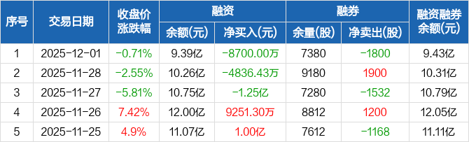 源杰科技:融资净偿还8700万元,两市排名第17(12-01)