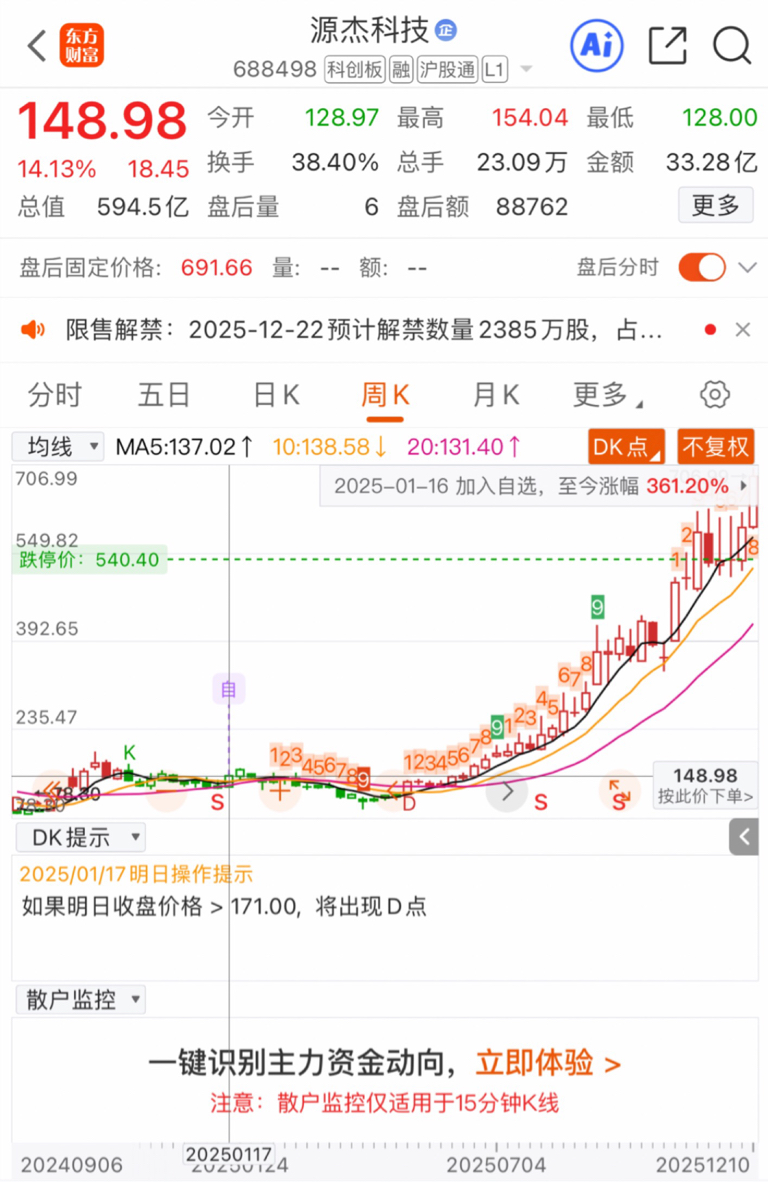$源杰科技(SH688498)$ 说出来不怕大家笑话,基本算是最低点加入自选说观察观察是否可以入手,然后就看着他一路到700了!