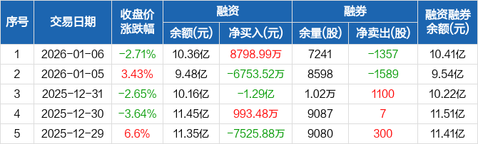 源杰科技:融资净买入8798.99万元,融资余额10.36亿元(01-06)