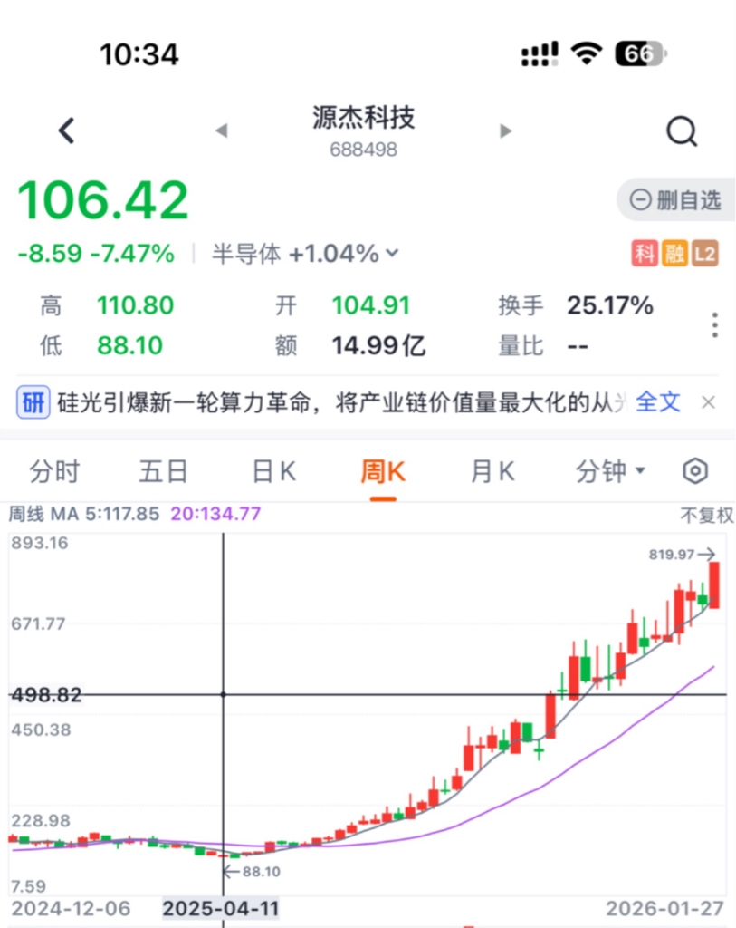 $源杰科技(SH688498)$ 我猜它到今年4月正好到10倍881块
