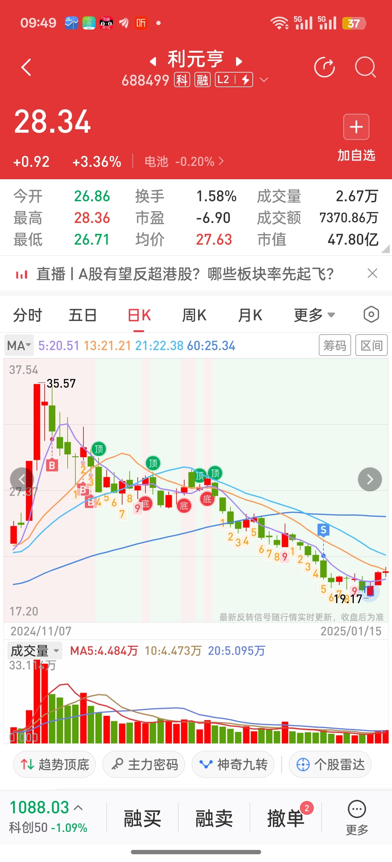 $利元亨(SH688499)$ 买在山顶,割在地板。。
