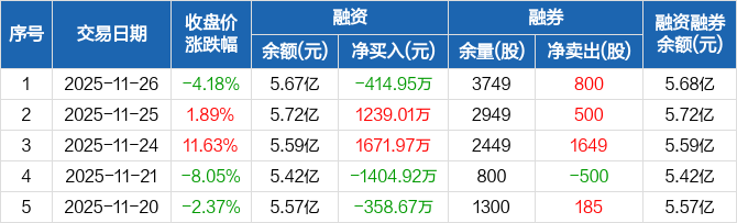 利元亨:融资净偿还414.95万元,融资余额5.67亿元(11-26)
