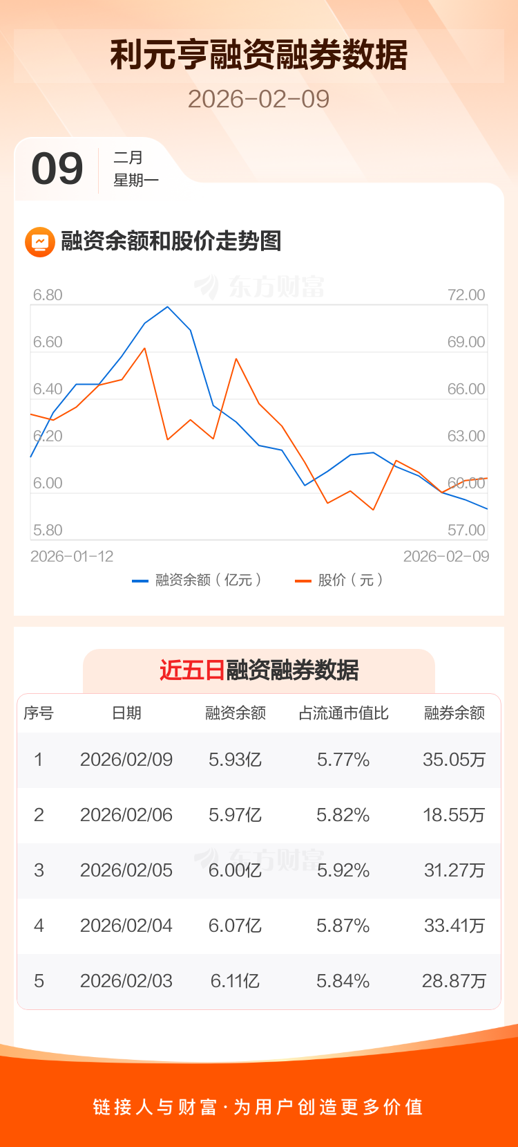 交易所最新数据显示,利元亨于2026年2月9日获融资买入2773.73万元,融资偿还3163.60万元,当日融资净偿还389.87万元。目前,该股融资余额5.93亿,占流通市值比例为5.77%。