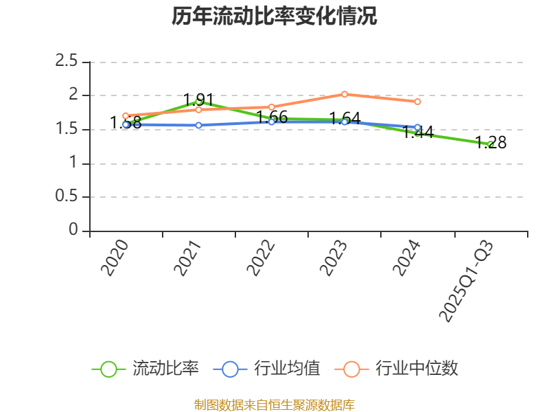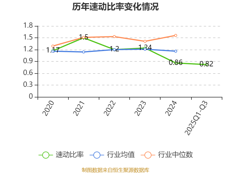 2025年前三季度,公司流动比率为1.28,速动比率为0.82。