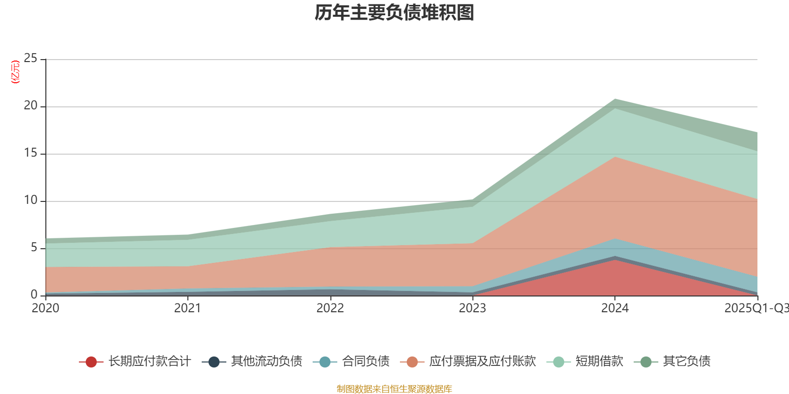 负债重大变化方面,截至2025年三季度末,公司长期应付款合计较上年末减少100%,占公司总资产比重下降12.24个百分点;长期借款较上年末增加6774.89%,占公司总资产比重上升2.02个百分点;短期借款较上年末减少1.03%,占公司总资产比重上升1.22个百分点;应付票据及应付账款较上年末减少4.9%,占公司总资产比重上升0.89个百分点。