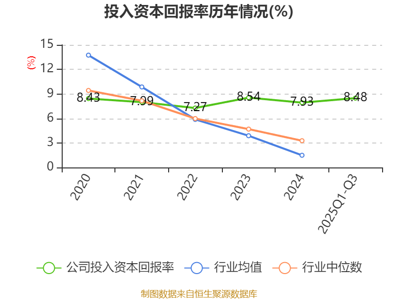 盈利能力方面, 2025年前三季度公司加权平均净资产收益率为12.2%,同比上升8.39个百分点。公司2025年前三季度投入资本回报率为8.48%,较上年同期上升5.36个百分点。