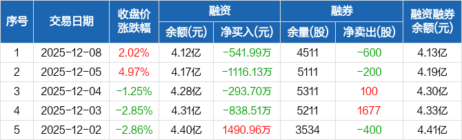 茂莱光学:连续4日融资净偿还累计2790.32万元(12-08)