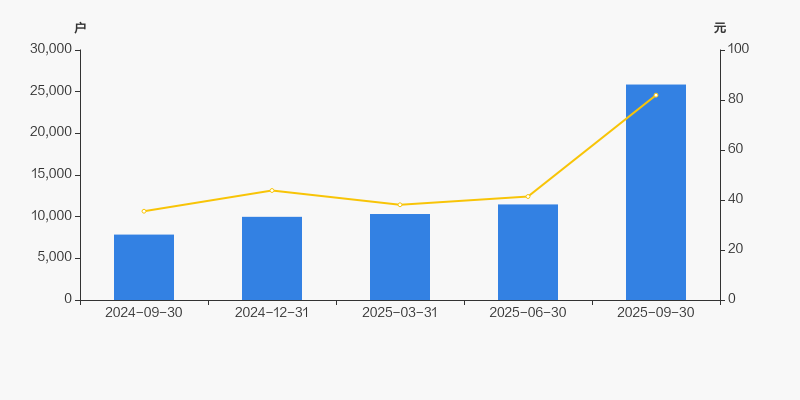 2024年9月30日至今,公司股东户数成倍增长,区间涨幅达229.38%。2024年9月30日至2025年9月30日区间股价上涨130.78%。
