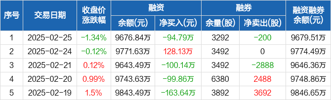 复旦张江:融资净偿还94.79万元,融资余额9676.84万元(02-25)