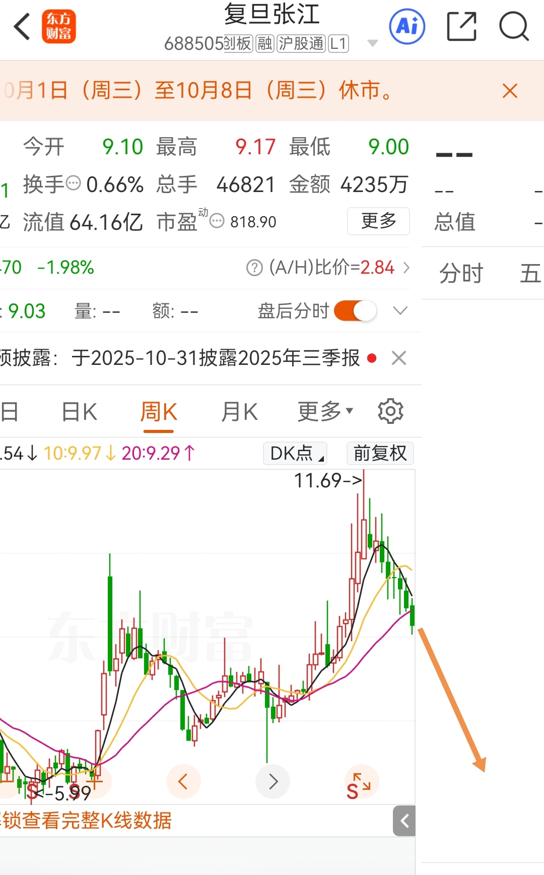 $复旦张江(SH688505)$ 高位票下跌趋势