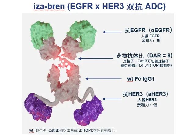 iza-bren(EGFR × HER3 双抗 ADC)结构