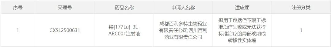 镥[177Lu]-BL-ARC001注射液临床试验申请获默示许可来源:CDE官网
