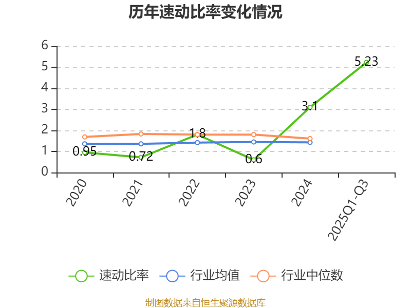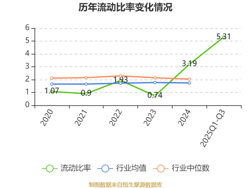2025年前三季度,公司流动比率为5.31,速动比率为5.23。