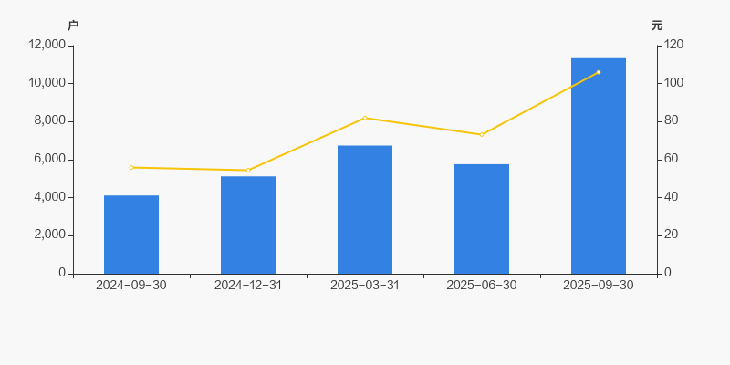 2024年9月30日至今,公司股东户数成倍增长,区间涨幅达175.42%。2024年9月30日至2025年9月30日区间股价上涨89.67%。