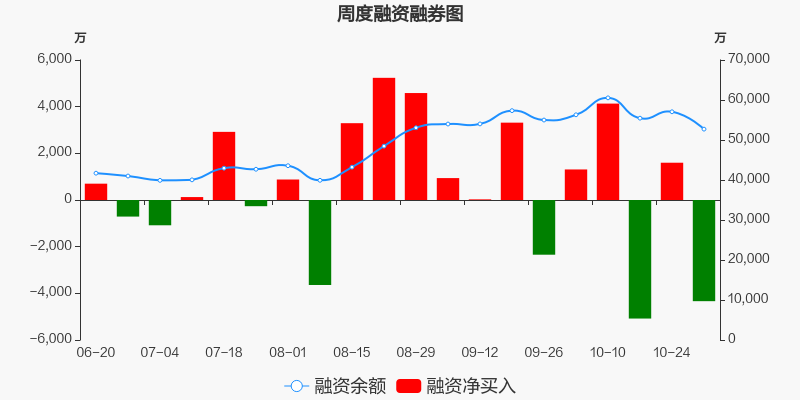 芯朋微本周(2025/10/27-2025/10/31)累计跌幅达5.22%,截至10月31日最新股价报收64.10元。从增量上来看,10月27日至10月31日融资买入交易规模2.43亿元,融资偿还规模2.86亿元,期内融资净偿还4336.21万元。从存量上来看,截止11月2日,芯朋微融资融券余额5.27亿元,其中融资余额规模5.27亿元,融券余额规模26.92万元。
