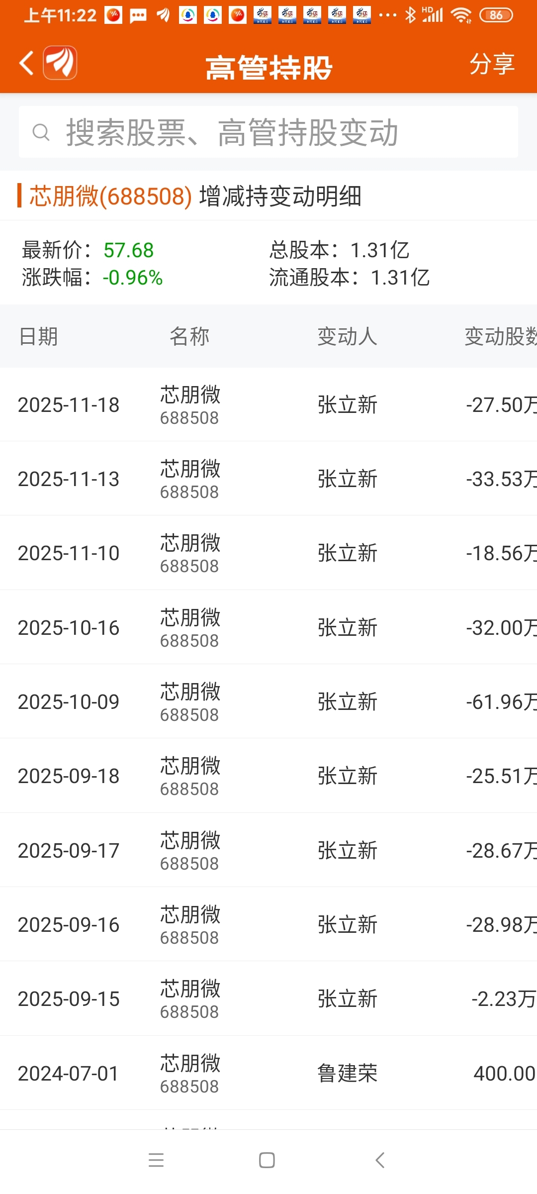 张立新是董事、公司核心技术骨干。他N次减持公司股票…如下图:难道你一个小散比张立
