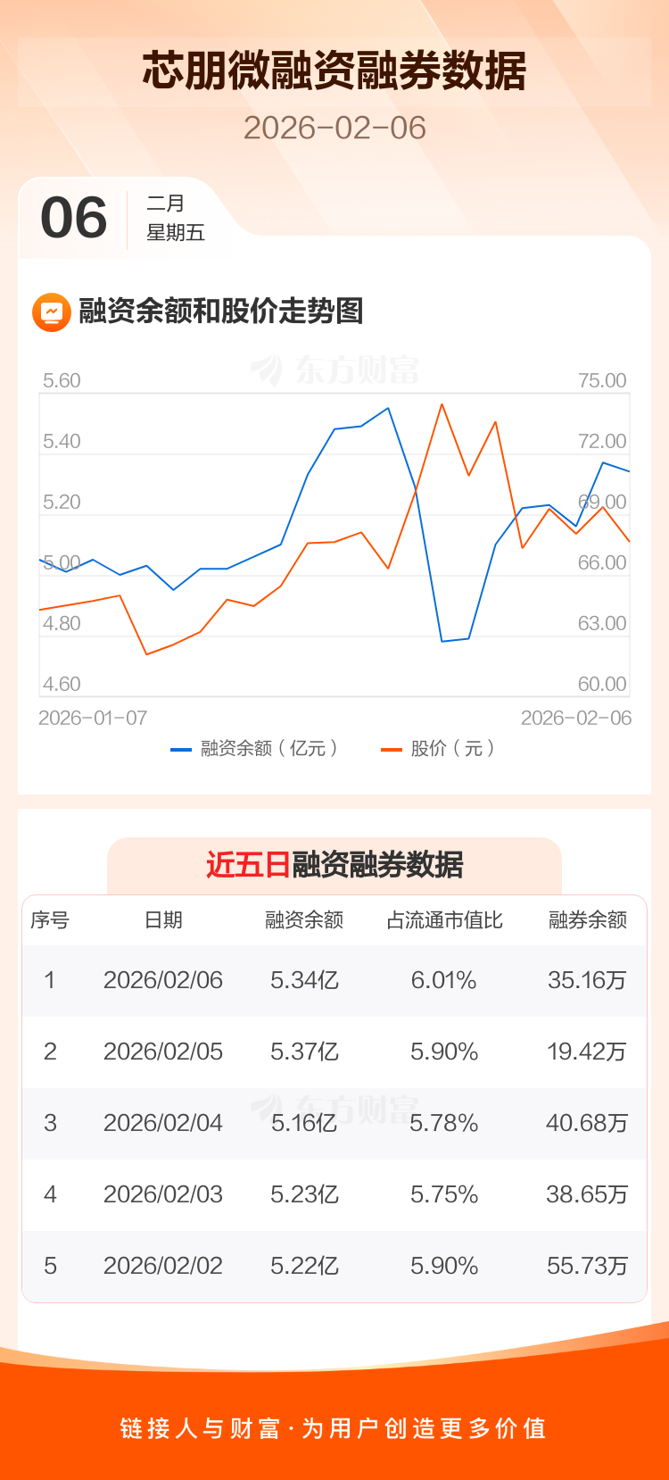 交易所最新数据显示,芯朋微于2026年2月6日获融资买入3620.81万元,融资偿还3912.67万元,当日融资净偿还291.86万元。目前,该股融资余额5.34亿,占流通市值比例为6.01%。