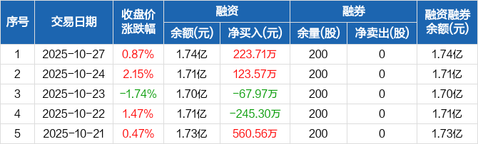 航亚科技:融资净买入223.71万元,融资余额1.74亿元(10-27)
