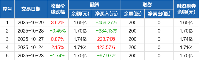 航亚科技:融资净偿还459.27万元,融资余额1.65亿元(10-29)