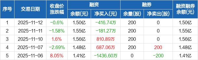 航亚科技:融资净偿还416.74万元,融资余额1.5亿元(11-12)