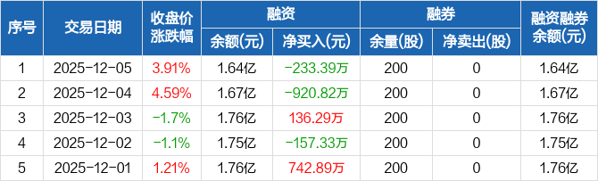 航亚科技:融资净偿还233.39万元,融资余额1.64亿元(12-05)