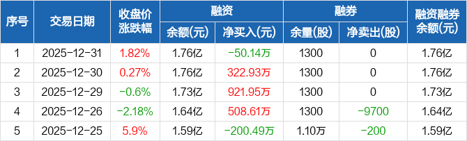 航亚科技:融资净偿还50.14万元,融资余额1.76亿元(12-31)