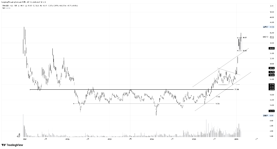 航亚科技,这个玩意也是自己的老长线了。目前持续在40附近震荡,最近几根线感觉有点