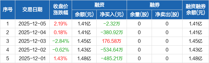 慧智微:融资净偿还2.32万元,融资余额1.41亿元(12-05)