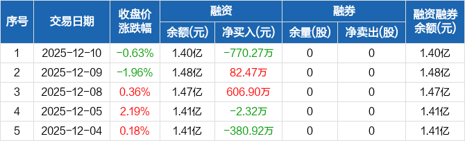 慧智微:融资净偿还770.27万元,融资余额1.4亿元(12-10)
