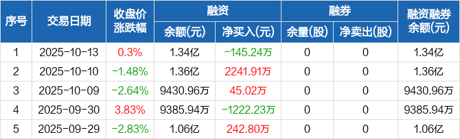 苑东生物:融资净偿还145.24万元,融资余额1.34亿元(10-13)
