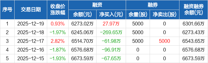 苑东生物:融资净买入27.97万元,融资余额6273.02万元(12-19)