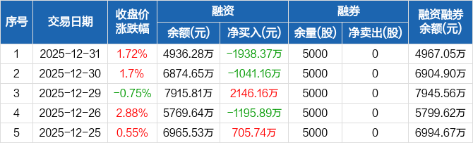 苑东生物:融资余额4936.28万元,创近一年新低(12-31)
