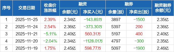 裕太微:融资净偿还143.89万元,融资余额2.34亿元(11-25)