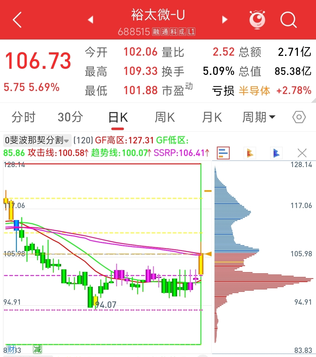 $裕太微-U(SH688515)$ 裕太微,之前说的是,股价低位价格筹码峰形态,现在价格已经突破ssrp所在价位,后续继续向上的概率更大。