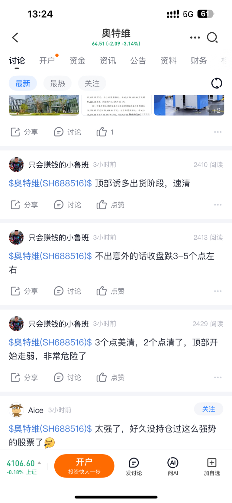 $奥特维(SH688516)$ 关注雪球小鲁班,带你吃肉车不翻,奥特维成功带领粉丝抄底逃顶