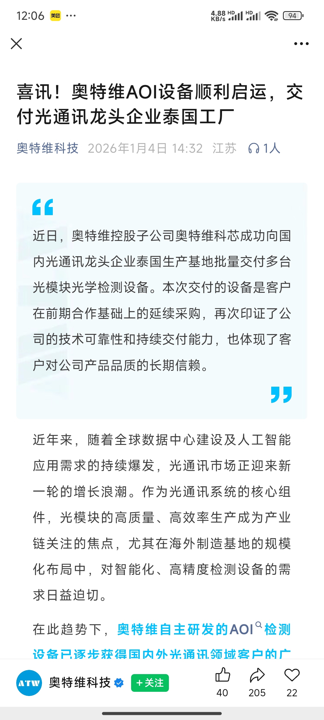 $奥特维(SH688516)$ 光模块概念