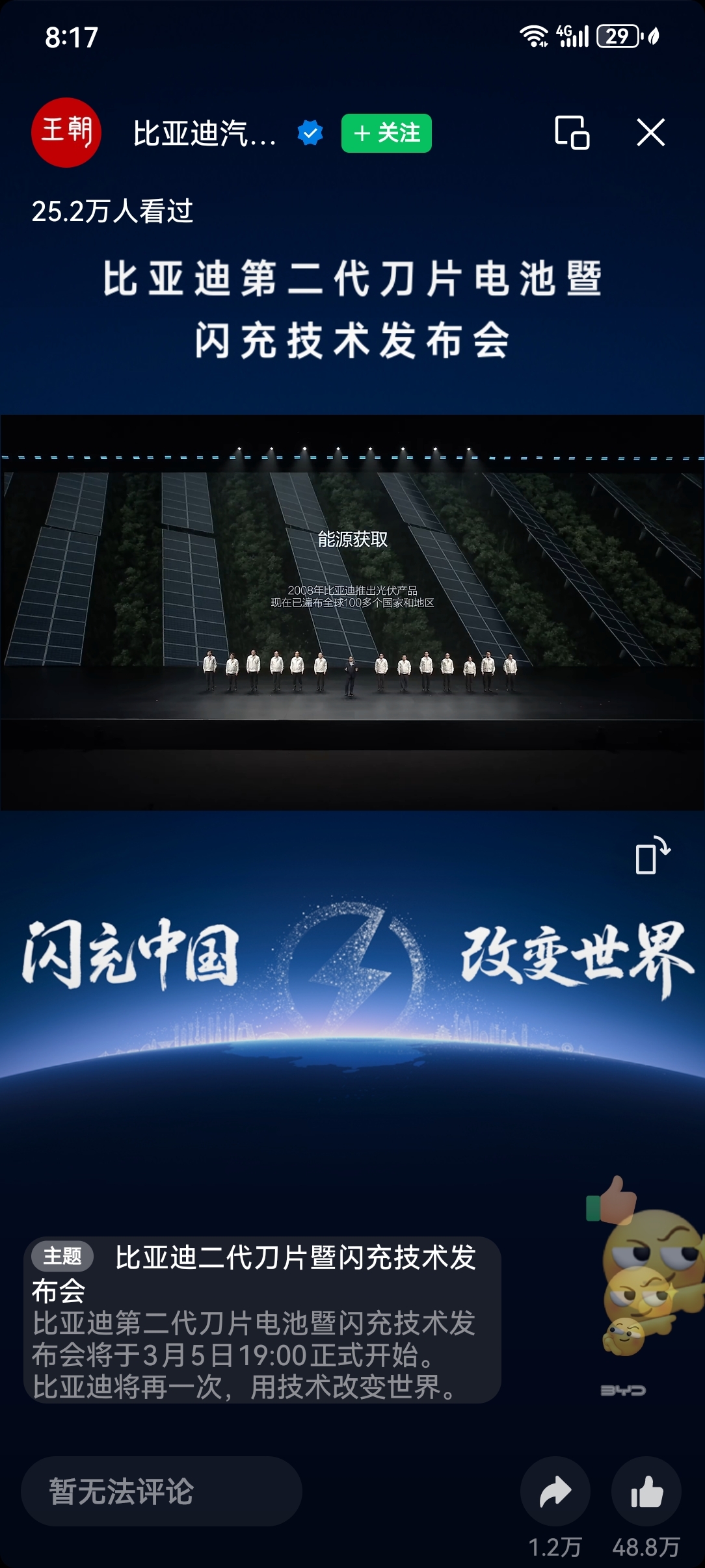 今天比亚迪发布以大储能电池为依托的闪充电站技术并今天开始启用,可以有效消纳光伏等