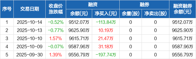 金冠电气:融资净偿还113.84万元,融资余额9512.07万元(10-14)