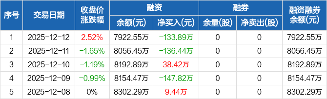 金冠电气:融资净偿还133.89万元,融资余额7922.55万元(12-12)