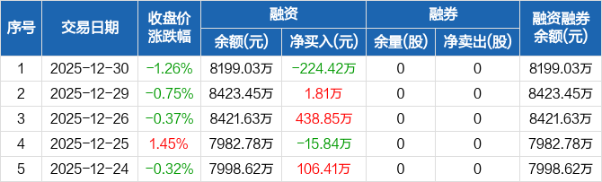 金冠电气:融资净偿还224.42万元,融资余额8199.03万元(12-30)