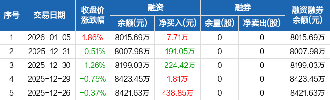 金冠电气:融资净买入7.71万元,融资余额8015.69万元(01-05)