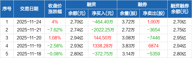 联赢激光:融资净偿还464.4万元,融资余额2.7亿元(11-24)