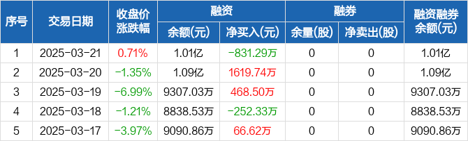 南亚新材:融资净偿还831.29万元,融资余额1.01亿元(03-21)
