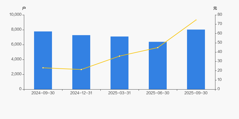 2024年9月30日至今,公司股东户数有所增长,区间涨幅为3.23%。2024年9月30日至2025年9月30日区间股价上涨223.08%。