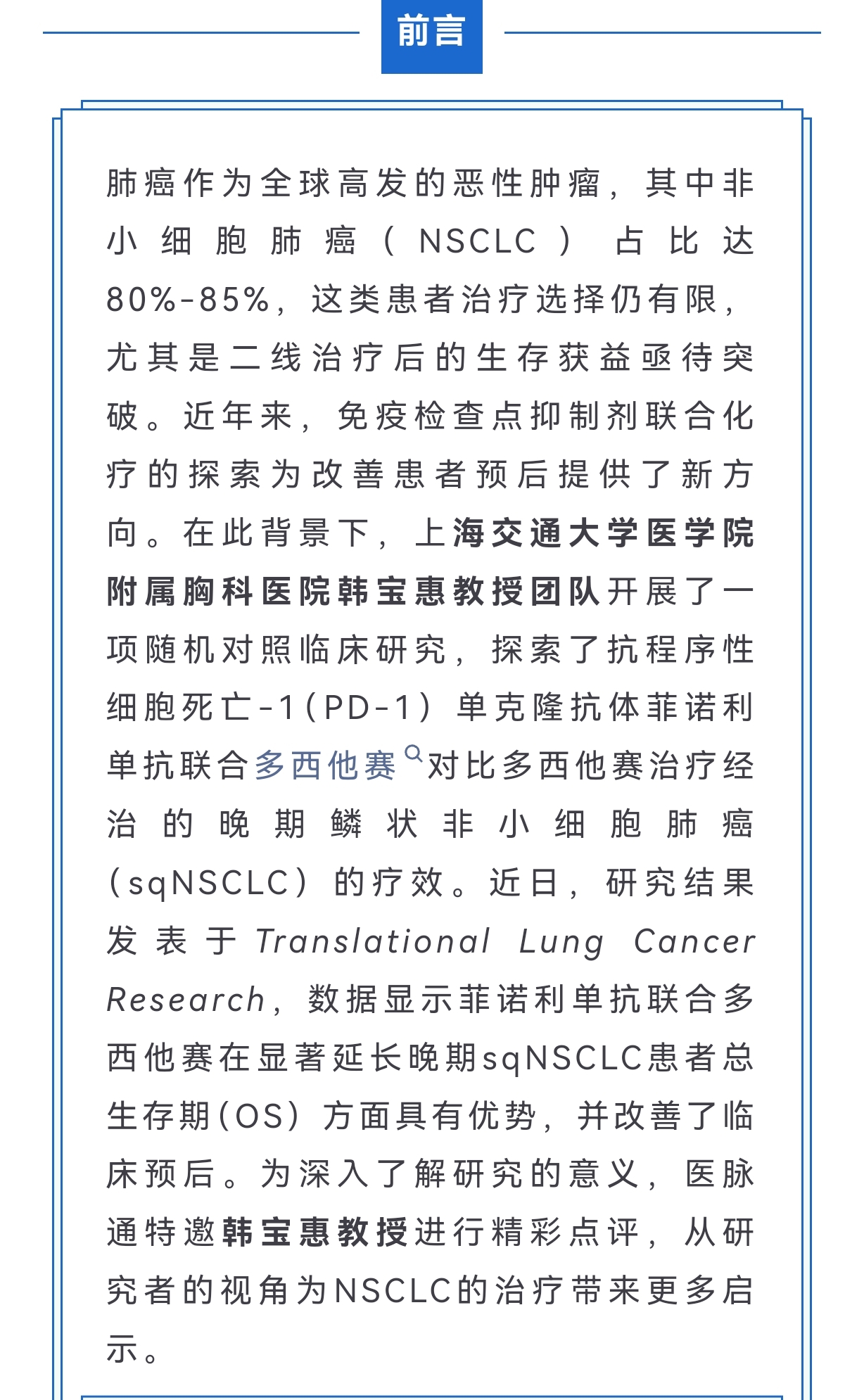 免疫联合化疗再证优势,菲诺利单抗为晚期鳞状NSCLC二线治疗提供新选择