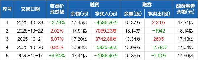 芯原股份:融资净偿还4586.2万元,融资余额17.45亿元(10-23)