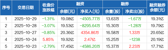 芯原股份:融资净偿还4505.77万元,融资余额19.08亿元(10-29)