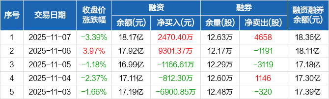 芯原股份融资融券信息显示,2025年11月7日融资净买入2470.4万元;融资余额18.17亿元,较前一日增加1.38%